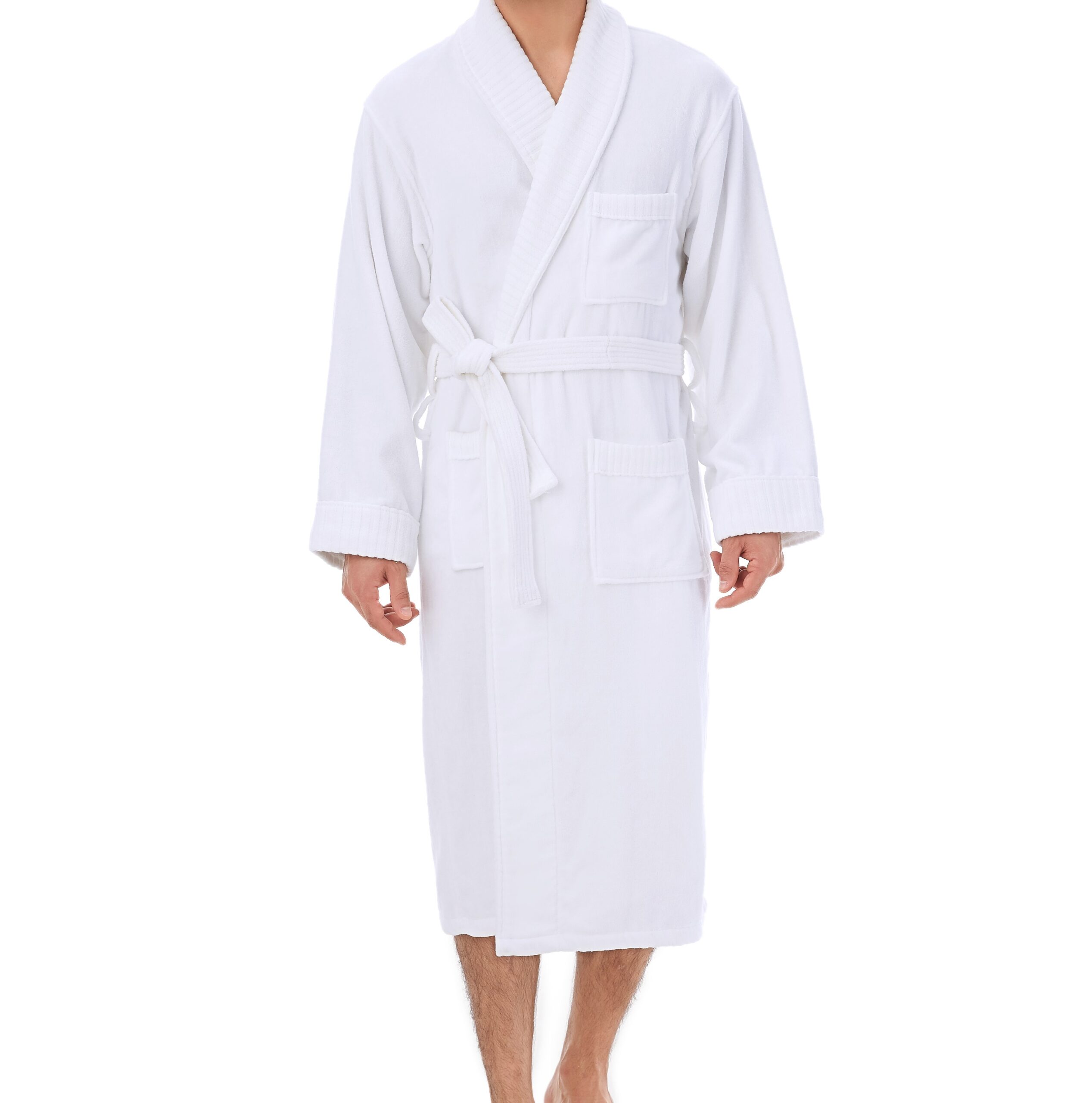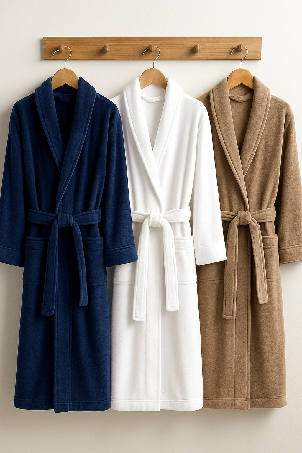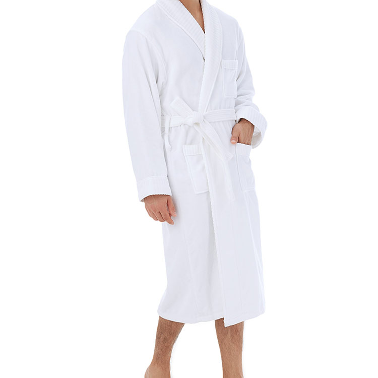 Indulge in the plush comfort of our velour bathrobe, perfect for cold climates. Made from a luxurious blend of 50% cotton and 50% polyester, this bathrobe features thick, premium fabric that offers exceptional warmth and coziness. Available in classic white and other colors upon request, it features shawl collar, a self-tie belt for a tailored fit, and two convenient side pockets. Optional embroidery adds a personalized touch, making this bathrobe a stylish and practical addition to your loungewear collection.