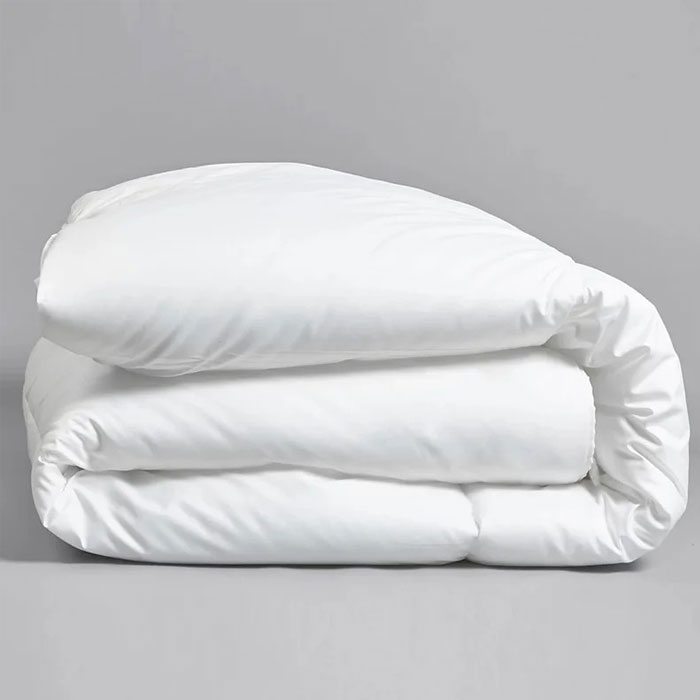 Upgrade your bedding with our duvet insert, available in white and off-white. Featuring a 100% Egyptian cotton casing and box-stitched design for enhanced comfort and durability, this duvet insert is filled with high-quality microfibre from Belgium. It is anti-bacterial and allergen-free, ensuring a healthy sleep environment. Machine washable for easy care.