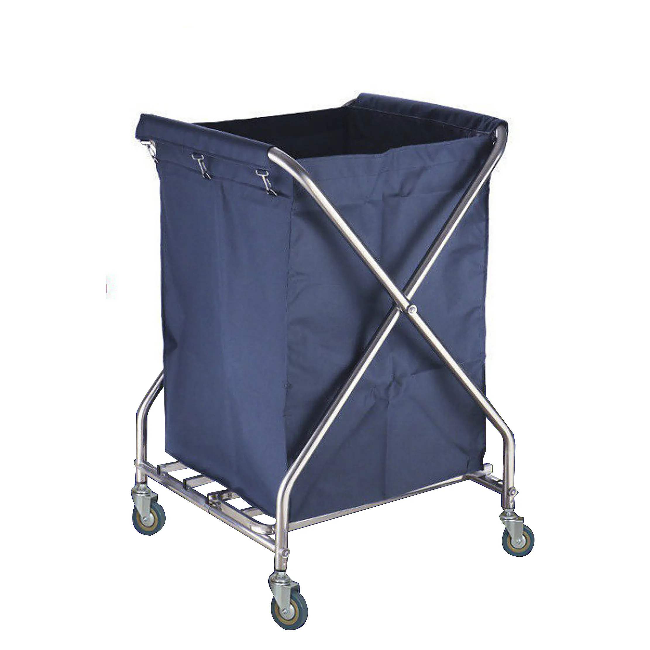 Introducing Classy Linens linen trolley, crafted from high-quality stainless steel and available in multiple colors upon request. This trolley features a waterproof canvas bag for secure and clean storage of linens. The durable rubber bumper ensures protection against accidental impacts, while the four poly-on-poly swivel caster wheels allow for smooth and effortless movement.The X-shaped frame design enables easy folding, making it convenient to store when not in use. Specifically designed for the hospitality sector, this linen trolley is the perfect companion for the housekeeping department.